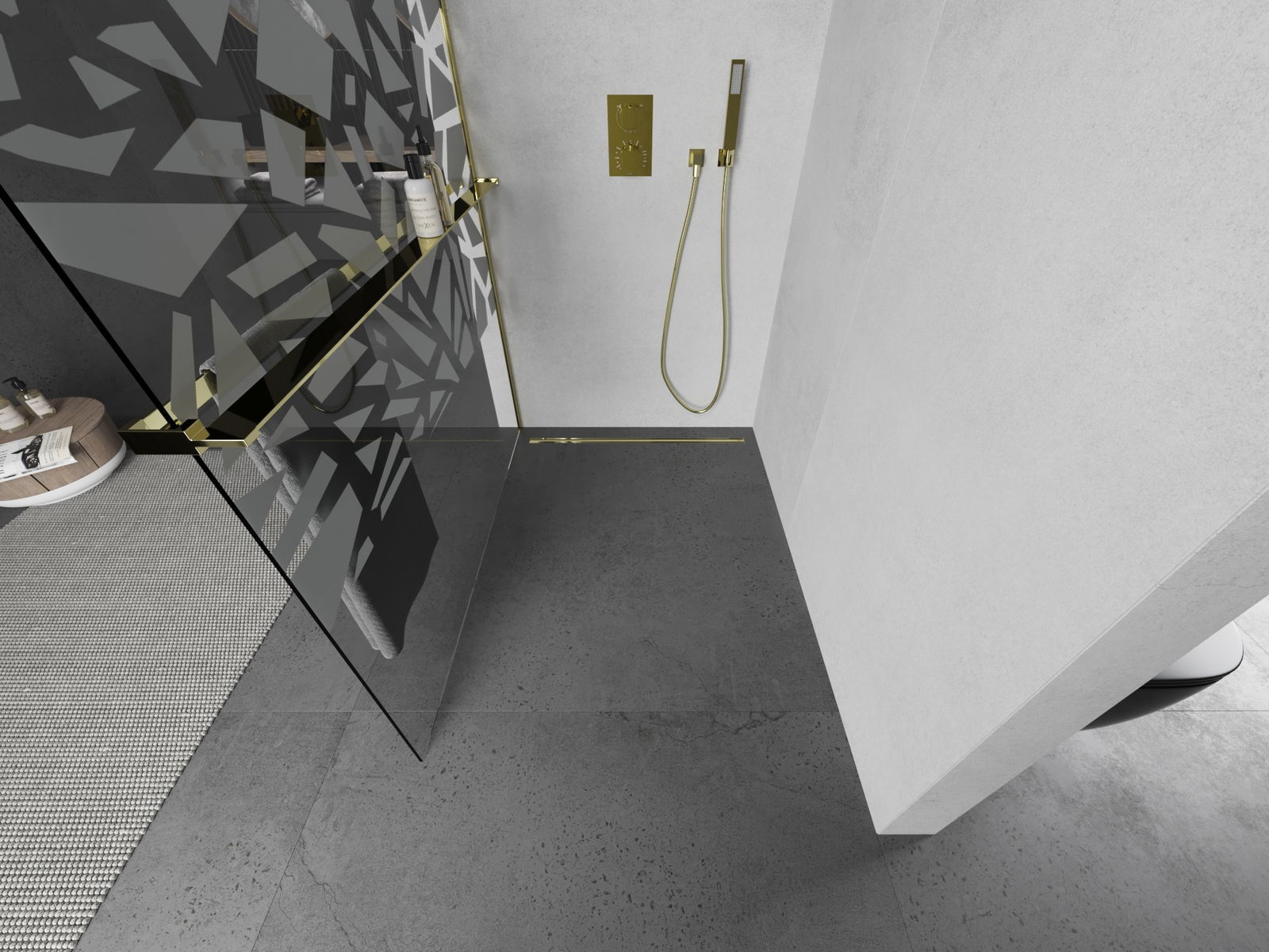 Mexen Kioto+ L Duschwand mit Ablage Walk-in 110 x 200 cm, weißes Muster, gold - 800-110-123-50-85