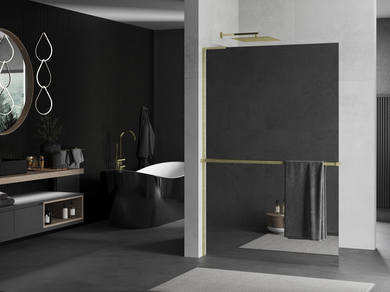 Die begehbare Duschwand ist eine ideale Lösung für Menschen mit Behinderungen. Die offene Kabine bietet einfachen Zugang und beseitigt die Notwendigkeit, Schwellenwerte und Türen zu überwinden. Die Dusche ist komfortabel und freundlich für alle.