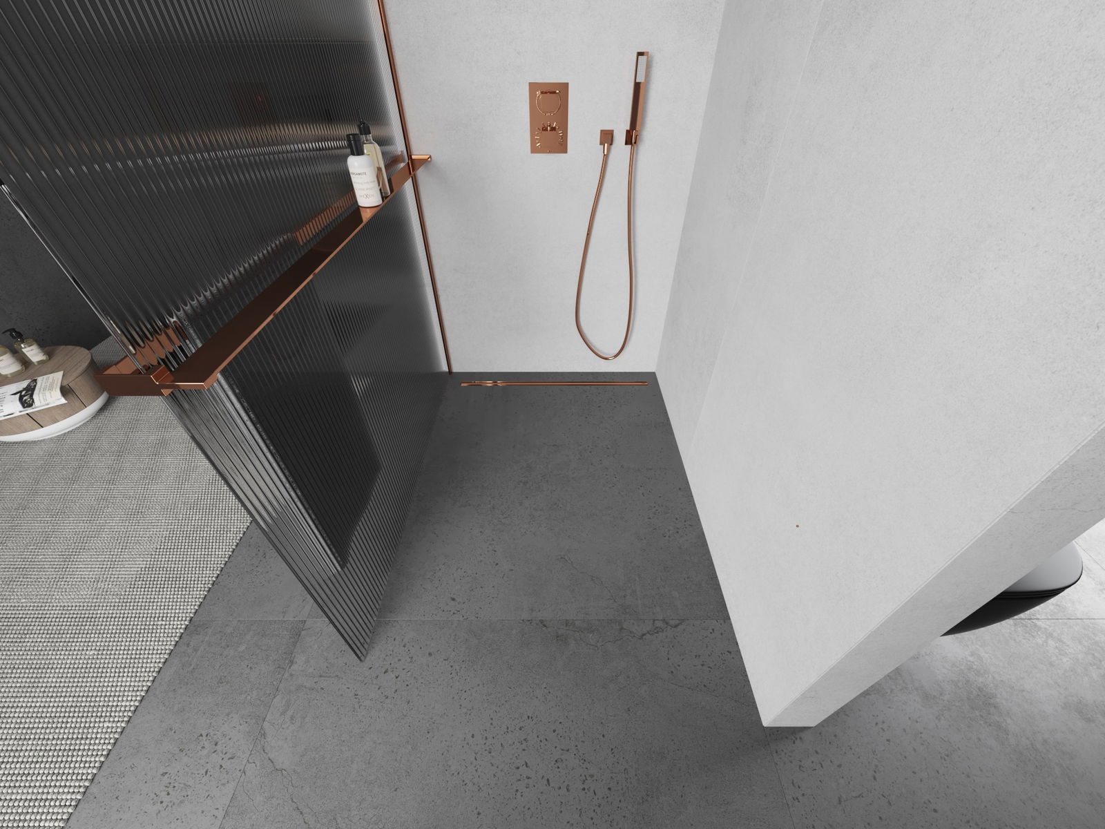 Mexen Kioto+ L Duschwand mit Regal Walk-in 100 x 200 cm, transparent, roségold - 800-100-123-60-09