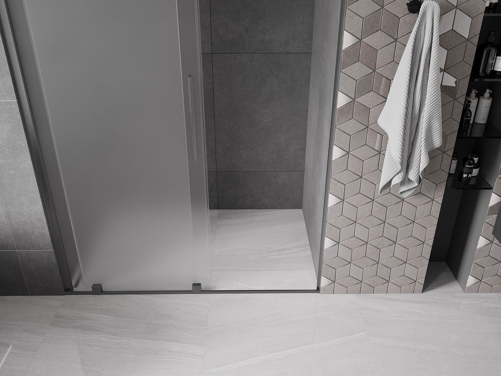 Der praktische und bequeme Griff ist aus rostfreiem Stahl gefertigt. Die modische Form, kombiniert mit einer auf die Farbe der Profile abgestimmten Oberfläche, verleiht dem Ganzen ein modernes und stilvolles Aussehen, das die Ästhetik eines jeden Badezimmers aufwertet.