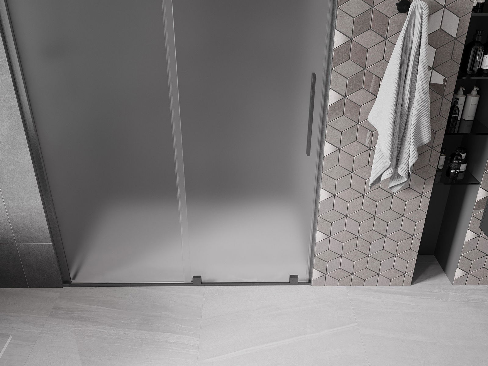 Mexen Velar Schiebeduschtür 140 cm, Mattglas, gebürstetes Gun Grey - 871-140-000-31-66