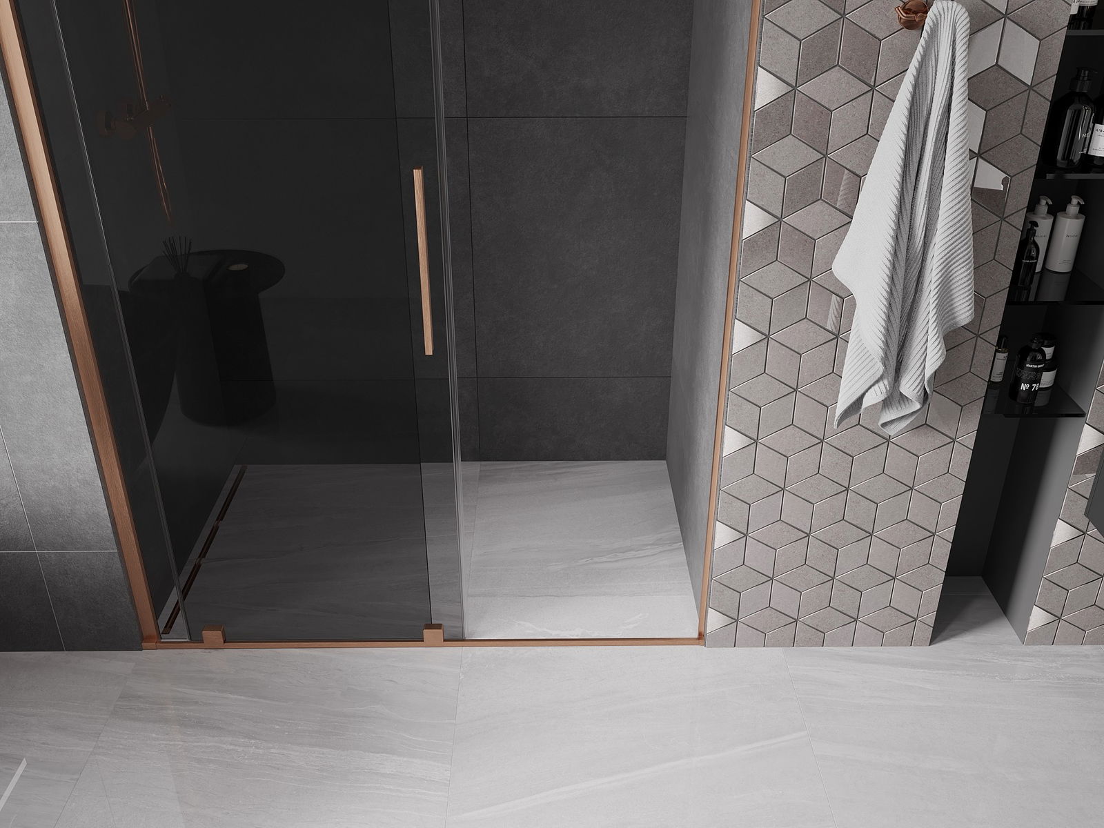 Mexen Velar Schiebetür Duschwand 160 cm, Graphit, gebürstetes Kupfer - 871-160-000-41-65