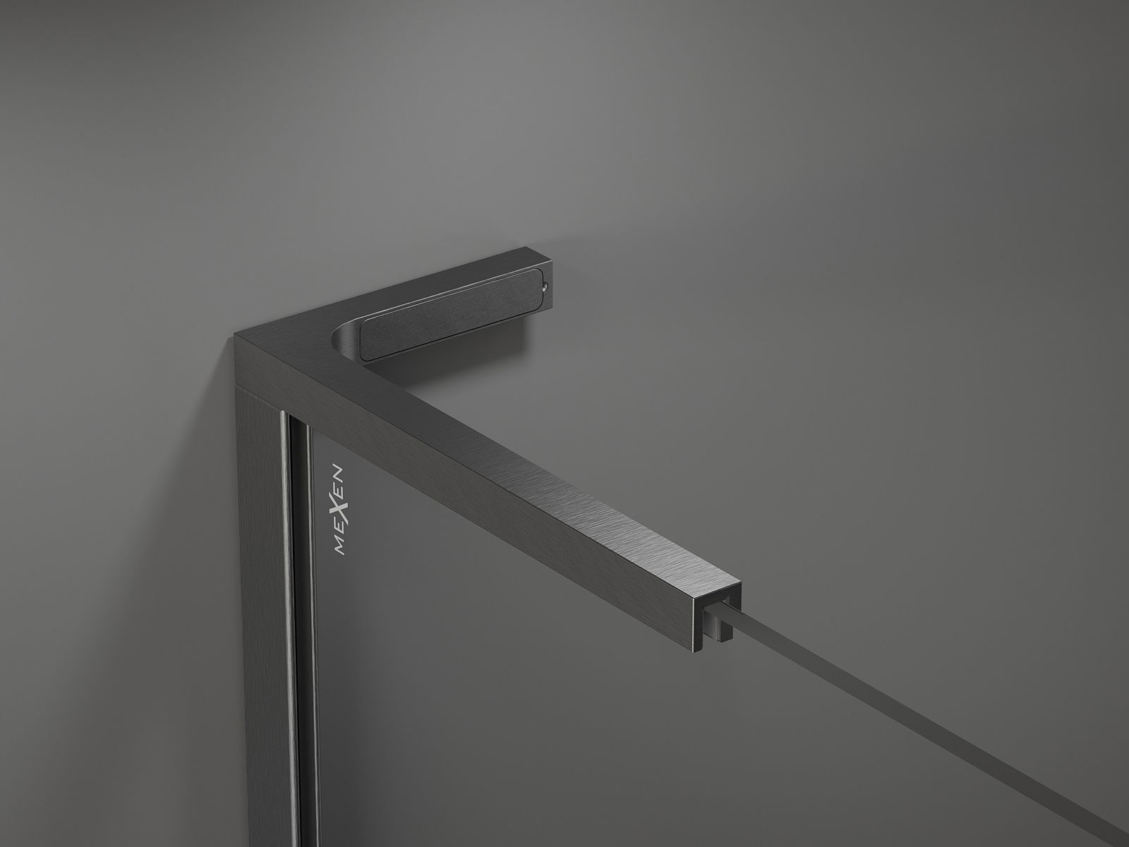 Mexen Kioto+ L Duschwand mit Regal Walk-in 120 x 200 cm, transparent/gefrostet, gebürstet gun gray - 800-120-123-66-35