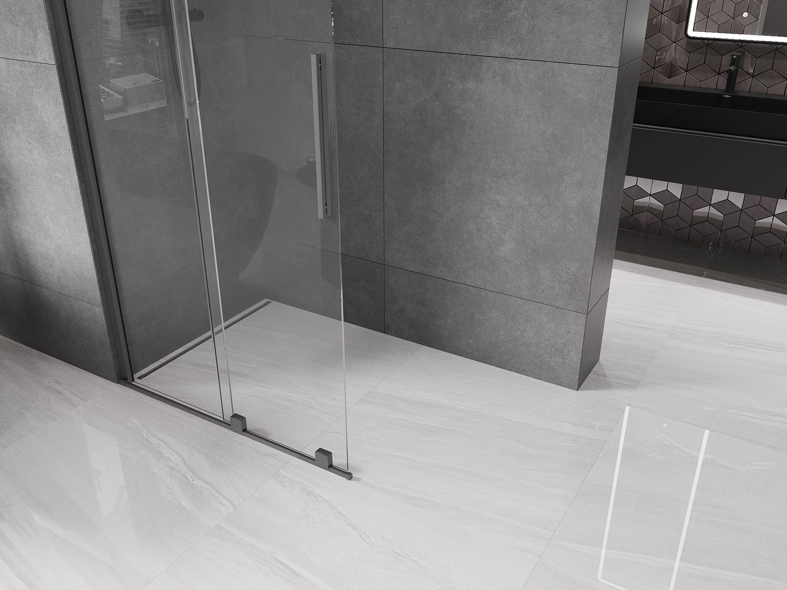 Mexen Velar Duschwand Schiebetür Walk-in 100 x 200 cm, transparent 8 mm, Gun Metal - 871-100-000-03-95