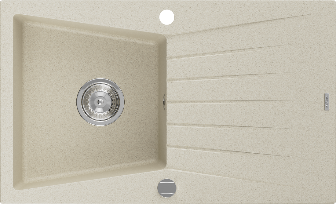 Die Spüle besteht aus hochwertigem Granit. Es ist eine elegante und vor allem praktische Ergänzung zu jeder Küche, unabhängig von ihrem Stil. Hohe Qualität und Granitdauer sorgen für eine langjährige Nutzung.