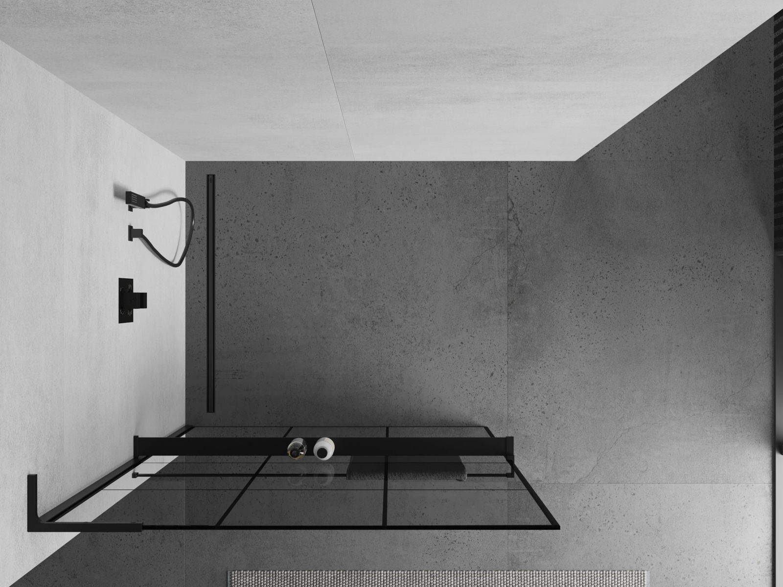 Mexen Kioto+ L Duschwand mit Regal, Walk-in 100 x 200 cm, schwarzes Gitter, schwarz - 800-100-123-70-77
