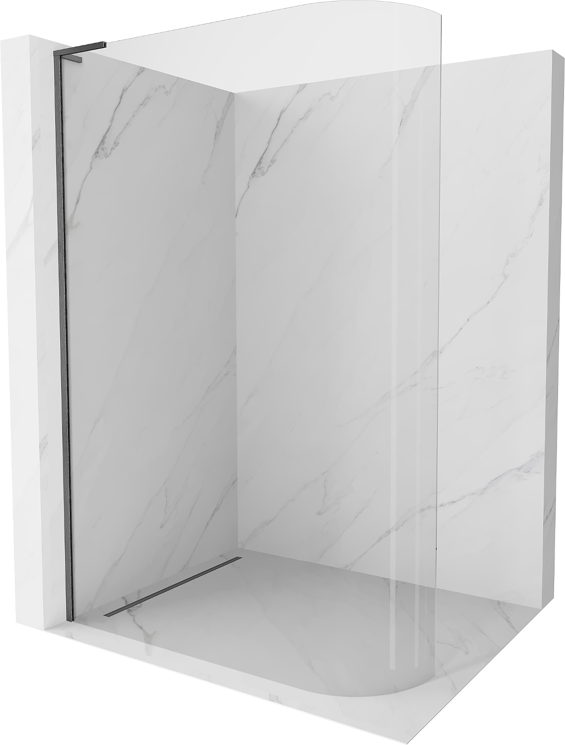 Mexen Kioto-R L abgerundete Duschwand Walk-in 90 x 200 cm, transparent, gebürstet Gun Gray - 800-090-103-66-06