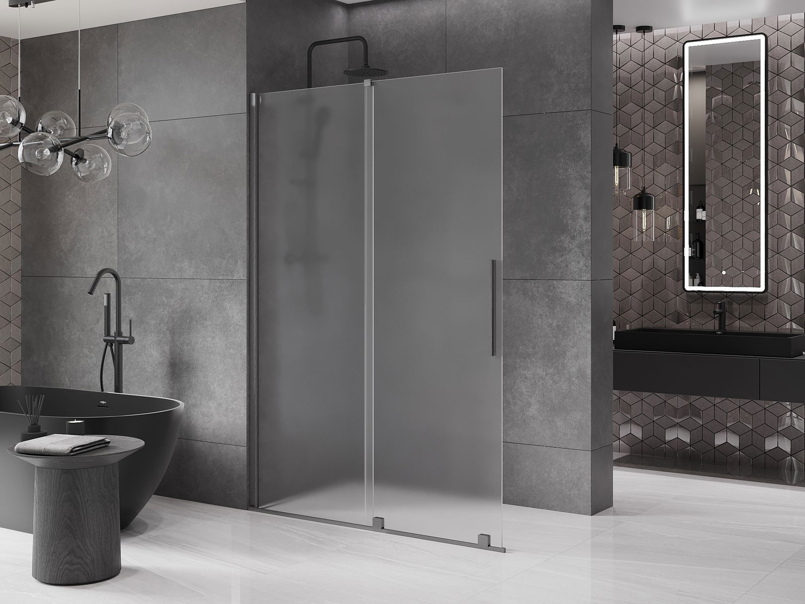Mexen Velar verschiebbare Walk-in-Duschwand 140 x 200 cm, matiert 8 mm, gebürstet gun gray - 871-140-000-33-66