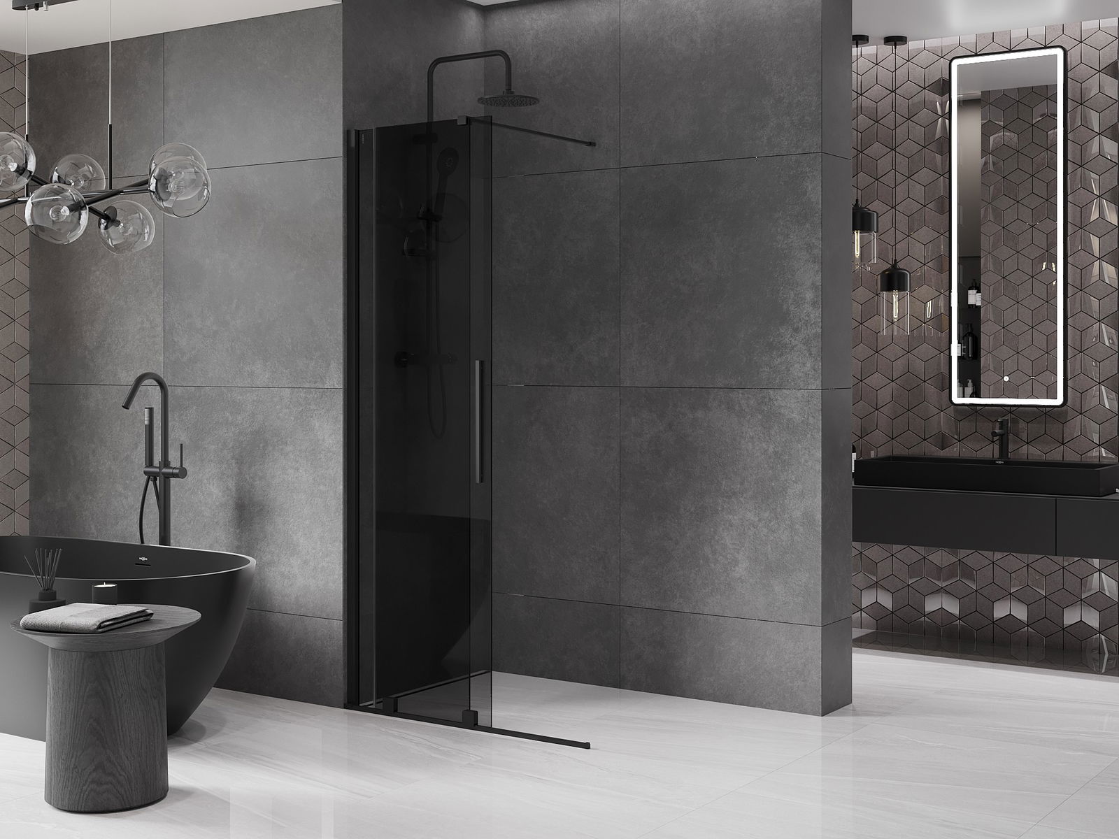 Mexen Velar Duschwand zum Verschieben Walk-in 100 x 200 cm, Graphit 8 mm, Schwarz - 871-100-000-43-70