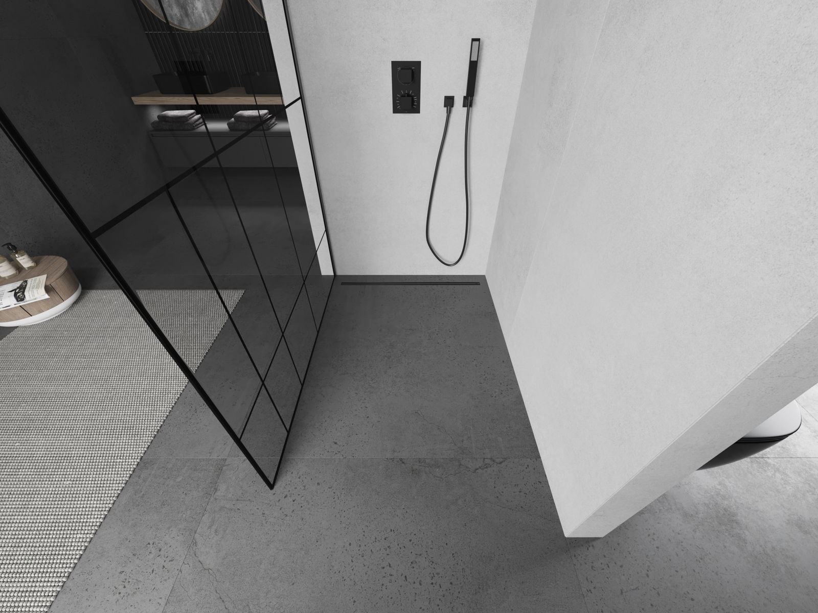 Abhängig von Ihren Bedürfnissen kann das Produkt sowohl auf der Duschschale als auch direkt auf dem Boden montiert werden. Mit der universellen Montagemethode können Sie das Produkt an verschiedene Arten von Badezimmern anpassen und Raum konfigurieren.