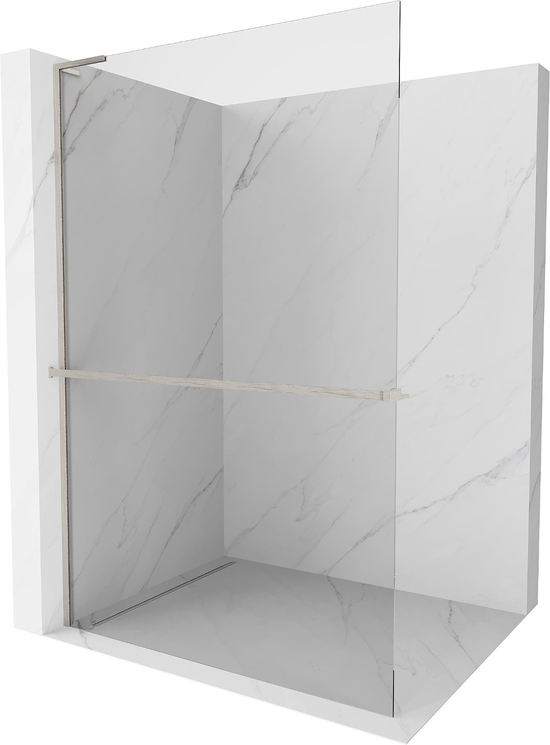 Die begehbare Duschwand ist eine ideale Lösung für Menschen mit Behinderungen. Die offene Kabine bietet einfachen Zugang und beseitigt die Notwendigkeit, Schwellenwerte und Türen zu überwinden. Die Dusche ist komfortabel und freundlich für alle.