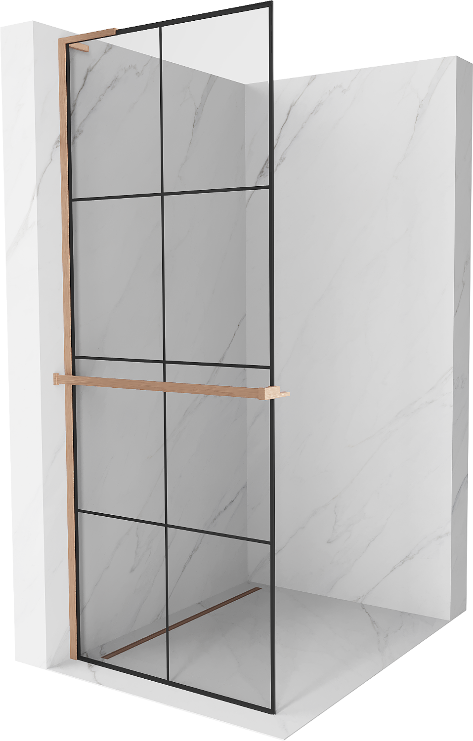 Mexen Kioto+ L Duschwand mit Ablage Walk-in 70 x 200 cm, schwarzes Gitter, gebürstetes Kupfer - 800-070-123-65-77