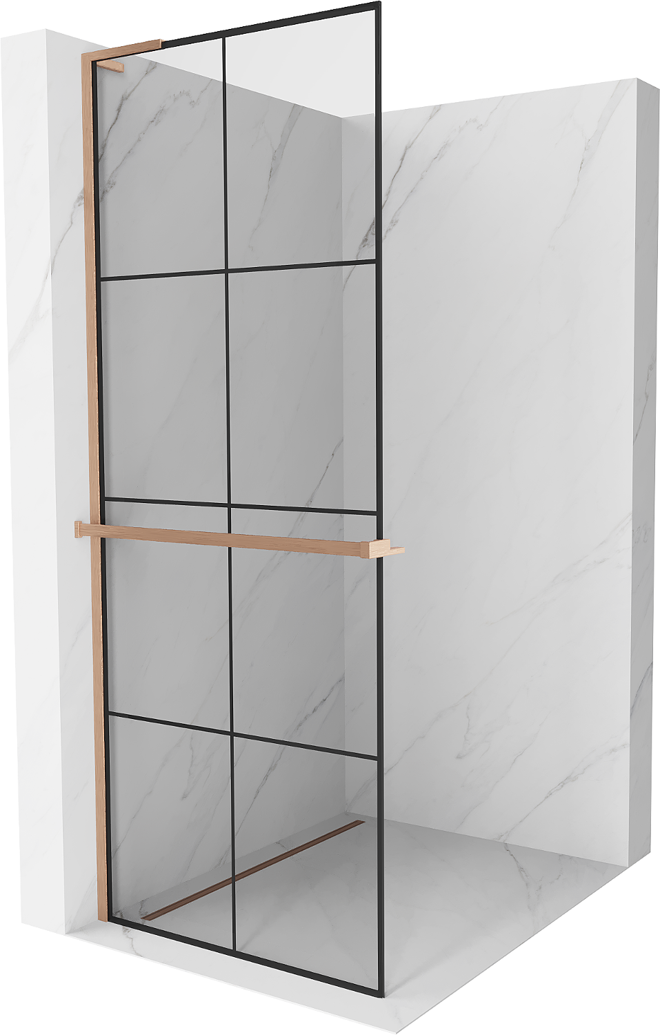Mexen Kioto+ L Duschwand mit Ablage Walk-in 80 x 200 cm, schwarzes Gitter, gebürstetes Kupfer - 800-080-123-65-77