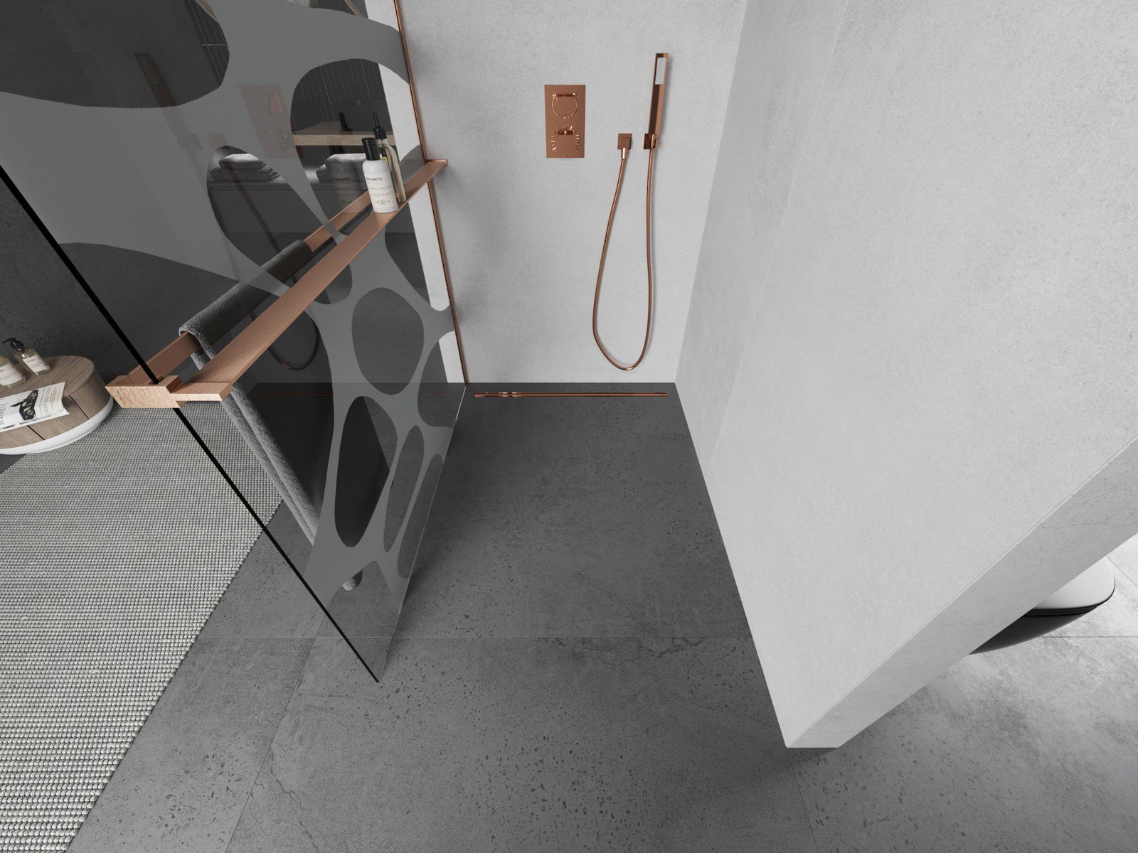 Mexen Kioto+ L Duschwand mit Regal Walk-in 90 x 200 cm, weiße Welle, gebürstetes Kupfer - 800-090-123-65-97
