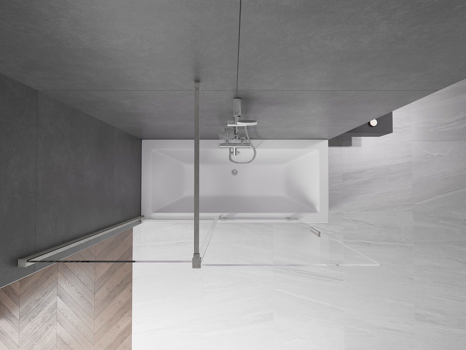 Effektiver Schutz gegen Wasser beim Baden. Der Bildschirm hat Dichtungen, die sich perfekt an das Glas des Glass und an der Badewanne der Badewanne anpassen. Eine funktionale Lösung, um Sicherheit und einfache Wartung zu gewährleisten.