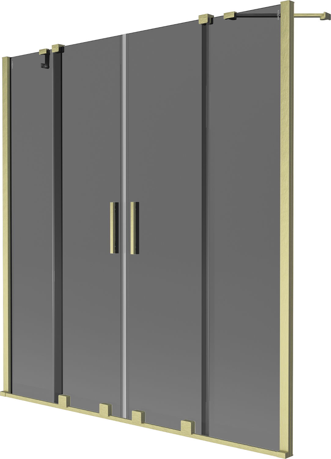 Mexen Velar Duo Wannentrennwand, 2-flügelig, verschiebbar 150 x 150 cm, Grafit, gebürstetes Gold - 896-150-000-42-55