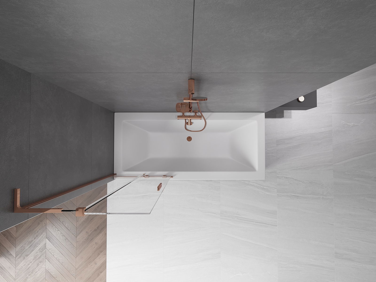 Mexen Velar L Badewannenfaltwand 2-flügelig verschiebbar 70 x 150 cm, transparent, Roségold - 896-070-003-01-60