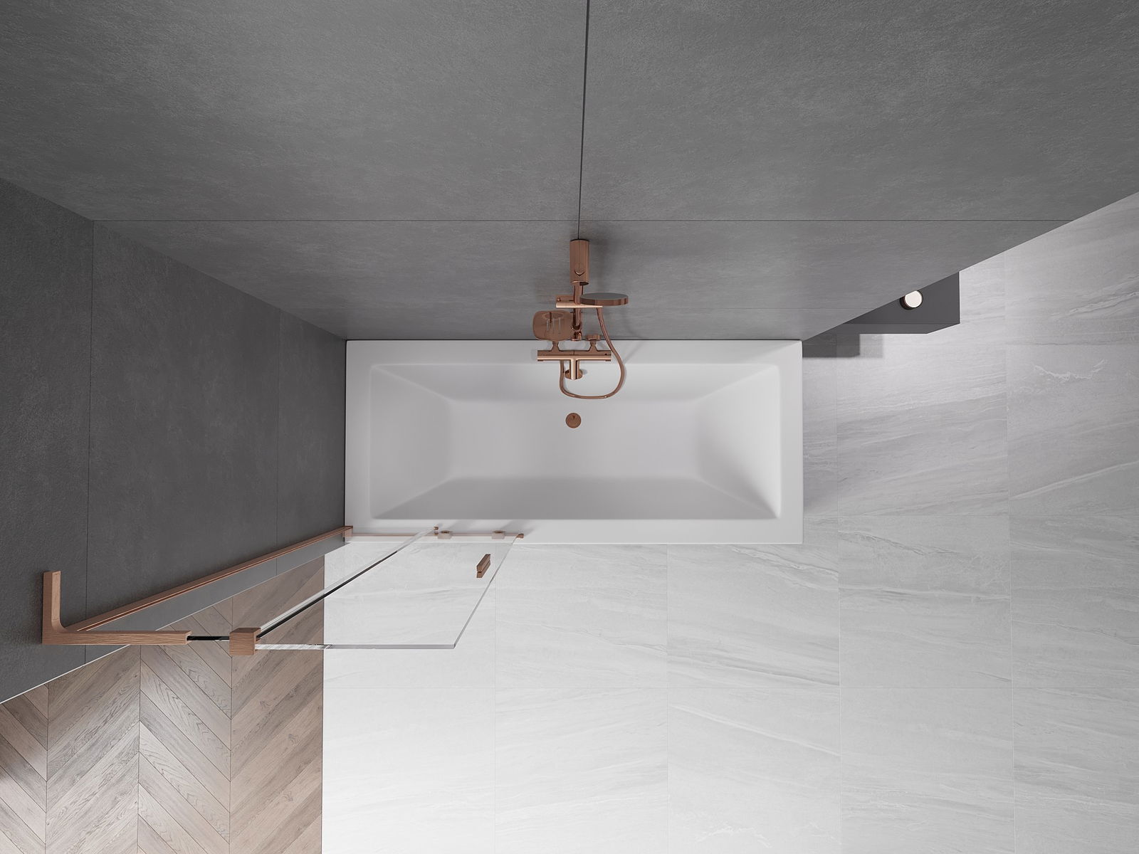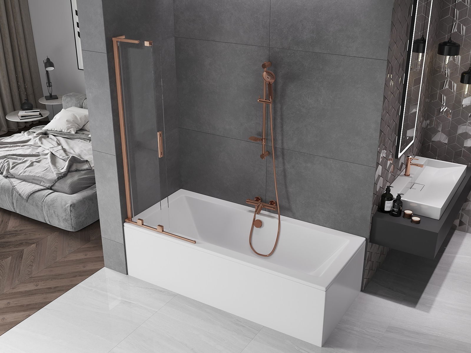 Effektiver Schutz gegen Wasser beim Baden. Der Bildschirm hat Dichtungen, die sich perfekt an das Glas des Glass und an der Badewanne der Badewanne anpassen. Eine funktionale Lösung, um Sicherheit und einfache Wartung zu gewährleisten.