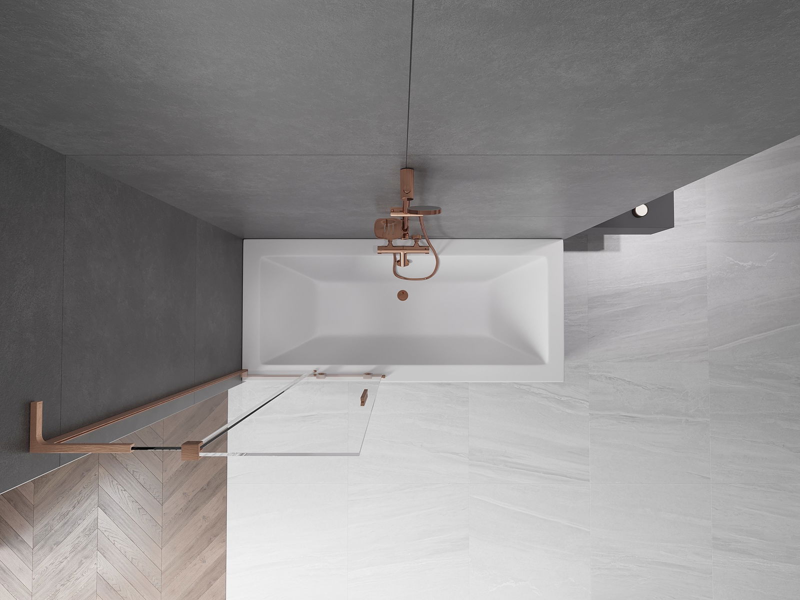 Mexen Velar L Badewannenwand 2-flügelig, verschiebbar 85 x 150 cm, transparent, gebürstetes Kupfer - 896-085-003-01-65