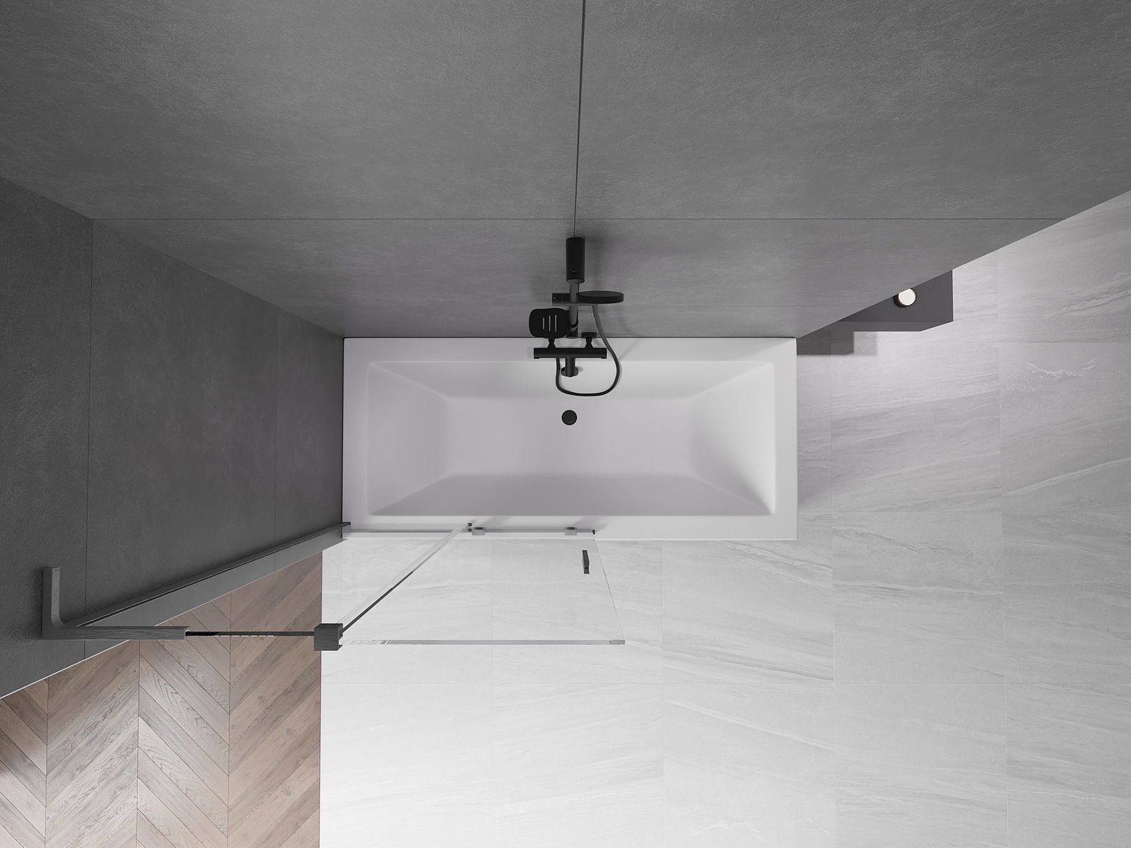 Effektiver Schutz vor dem Überlaufen von Wasser während des Badens. Die Duschwand verfügt über Dichtungen, die sich perfekt an die Glasscheibe und den Rand der Badewanne anpassen. Eine funktionale Lösung, die Sicherheit und einfache Reinigung gewährleistet.