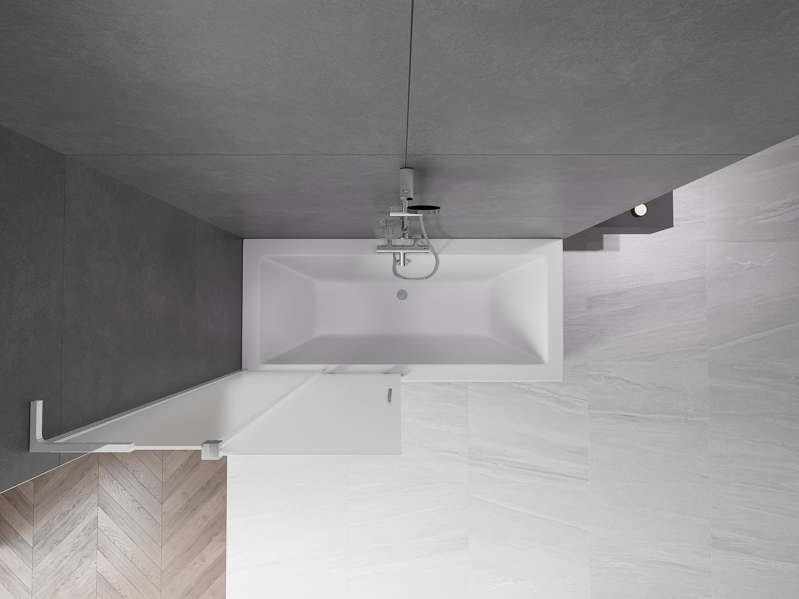 Effektiver Schutz vor dem Überlaufen von Wasser während des Badens. Die Duschwand verfügt über Dichtungen, die sich perfekt an die Glasscheibe und den Rand der Badewanne anpassen. Eine funktionale Lösung, die Sicherheit und einfache Reinigung gewährleistet.
