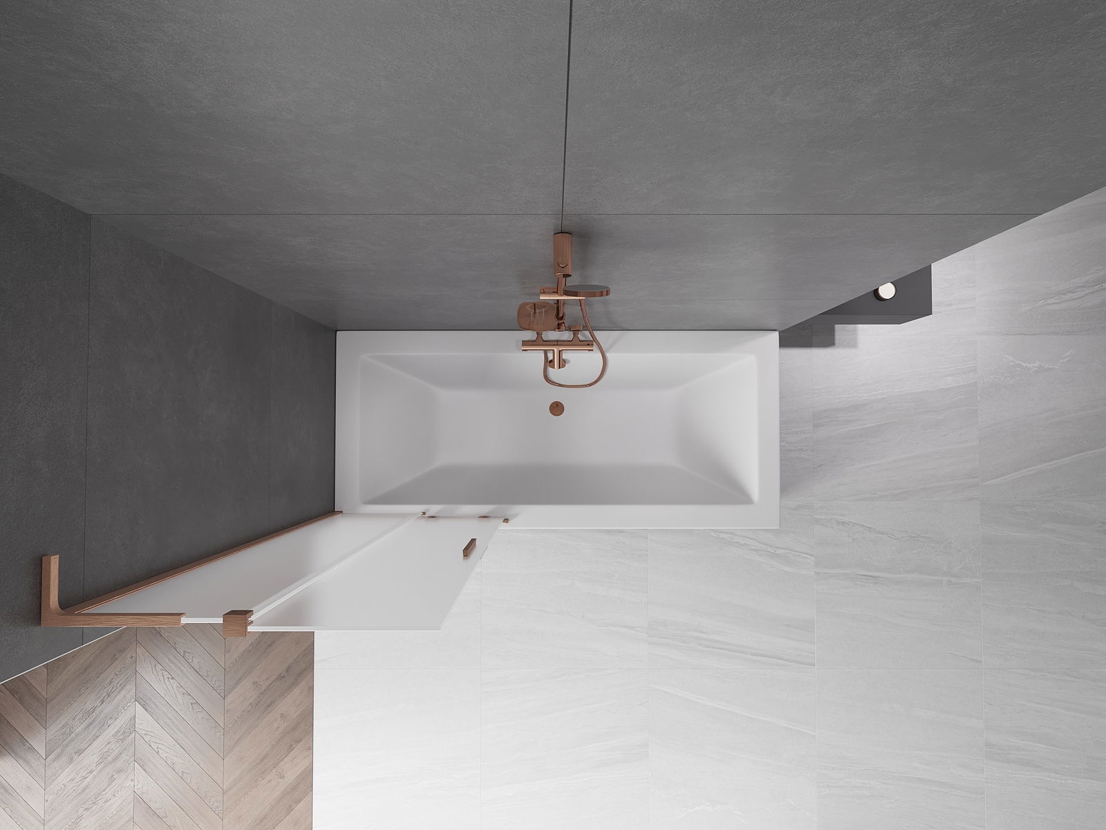 Mexen Velar L Badewannenabtrennung 2-flügelig schiebbar 85 x 150 cm, Mattglas, gebürstetes Kupfer - 896-085-003-31-65