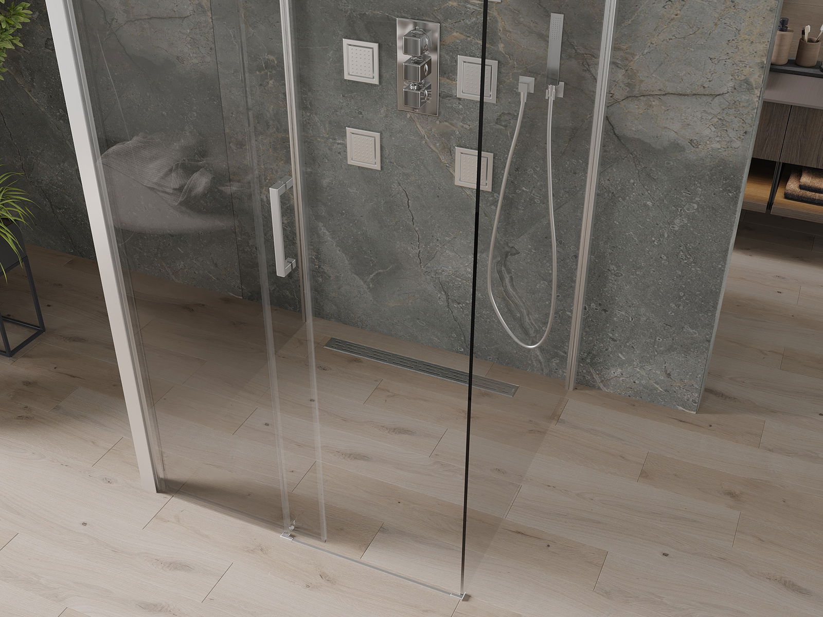 Dank der Verwendung eines universellen Montagesystems können die Duschtüren je nach Ihren Bedürfnissen rechts oder links montiert werden. Dank dessen können Sie problemlos eine Dusche entwerfen, die auf den Raum des Badezimmers zugeschnitten ist.