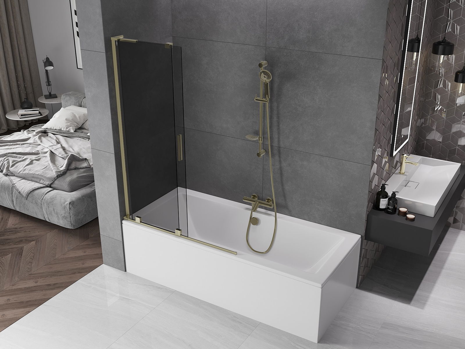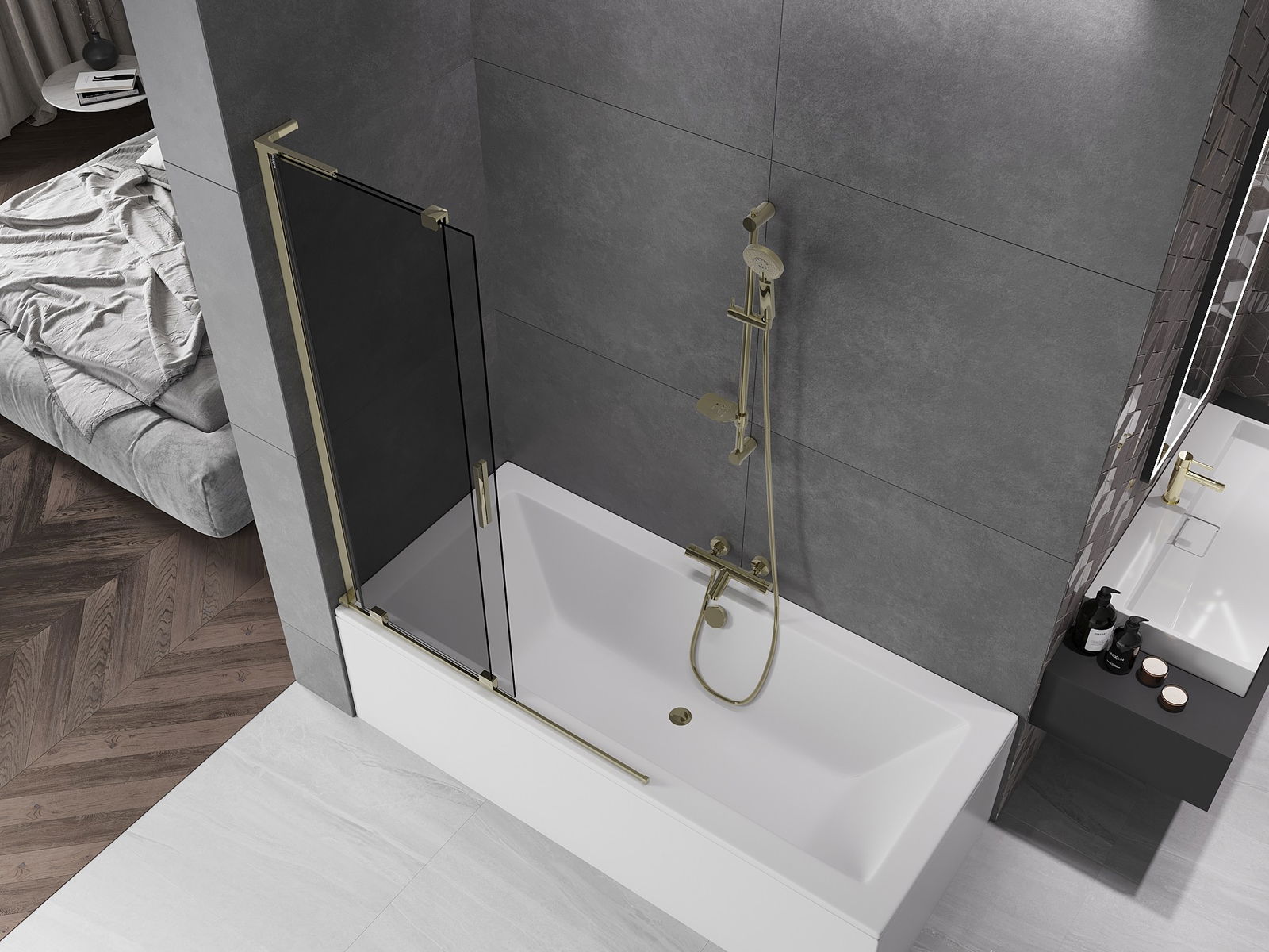 Mexen Velar L Badewannenabtrennung 2-flügelig verschiebbar 110 x 150 cm, Graphit, Gold - 896-110-003-41-50