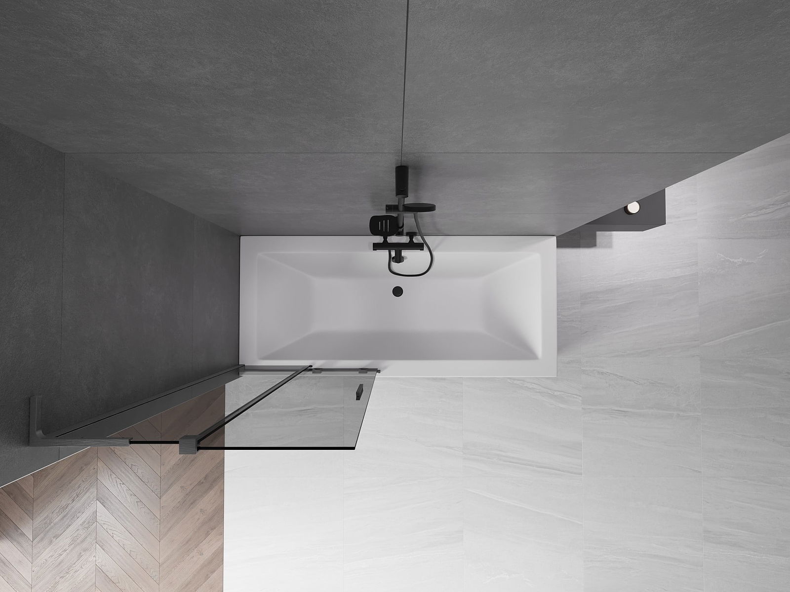 Effektiver Schutz vor dem Überlaufen von Wasser während des Badens. Die Duschwand verfügt über Dichtungen, die sich perfekt an die Glasscheibe und den Rand der Badewanne anpassen. Eine funktionale Lösung, die Sicherheit und einfache Reinigung gewährleistet.