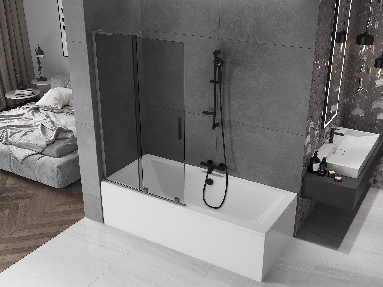 Mexen Velar L Badewannenfaltwand 2-flügelig verschiebbar 100 x 150 cm, grafit, gun gray gebürstet - 896-100-003-41-66