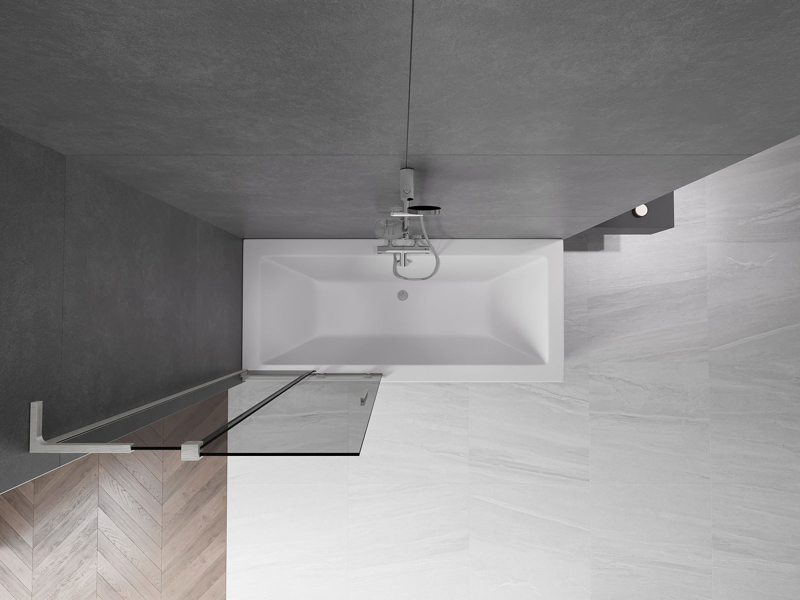 Effektiver Schutz vor dem Überlaufen von Wasser während des Badens. Die Duschwand verfügt über Dichtungen, die sich perfekt an die Glasscheibe und den Rand der Badewanne anpassen. Eine funktionale Lösung, die Sicherheit und einfache Reinigung gewährleistet.