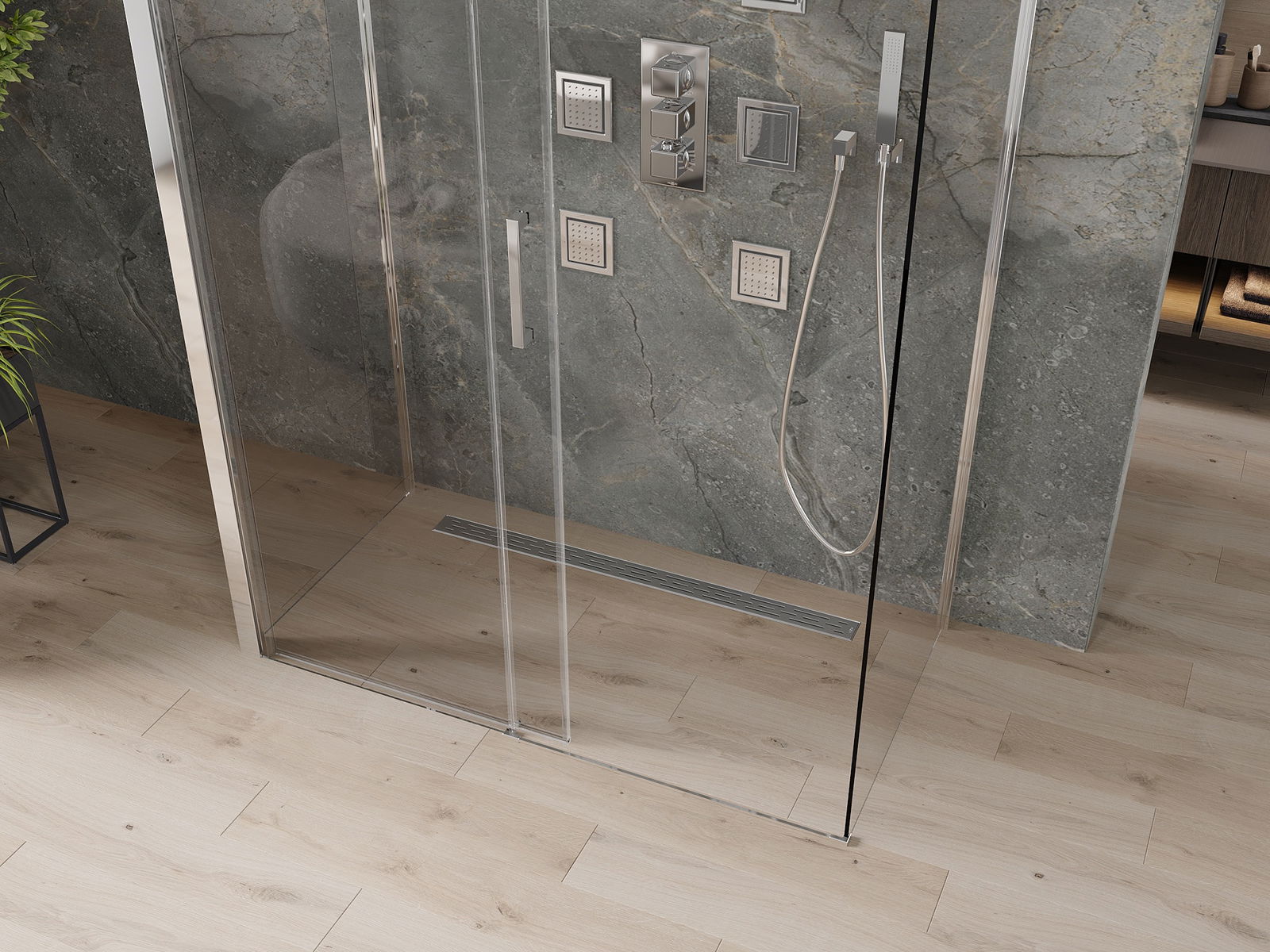Dank der Verwendung eines universellen Montagesystems können die Duschtüren je nach Ihren Bedürfnissen rechts oder links montiert werden. Dank dessen können Sie problemlos eine Dusche entwerfen, die auf den Raum des Badezimmers zugeschnitten ist.