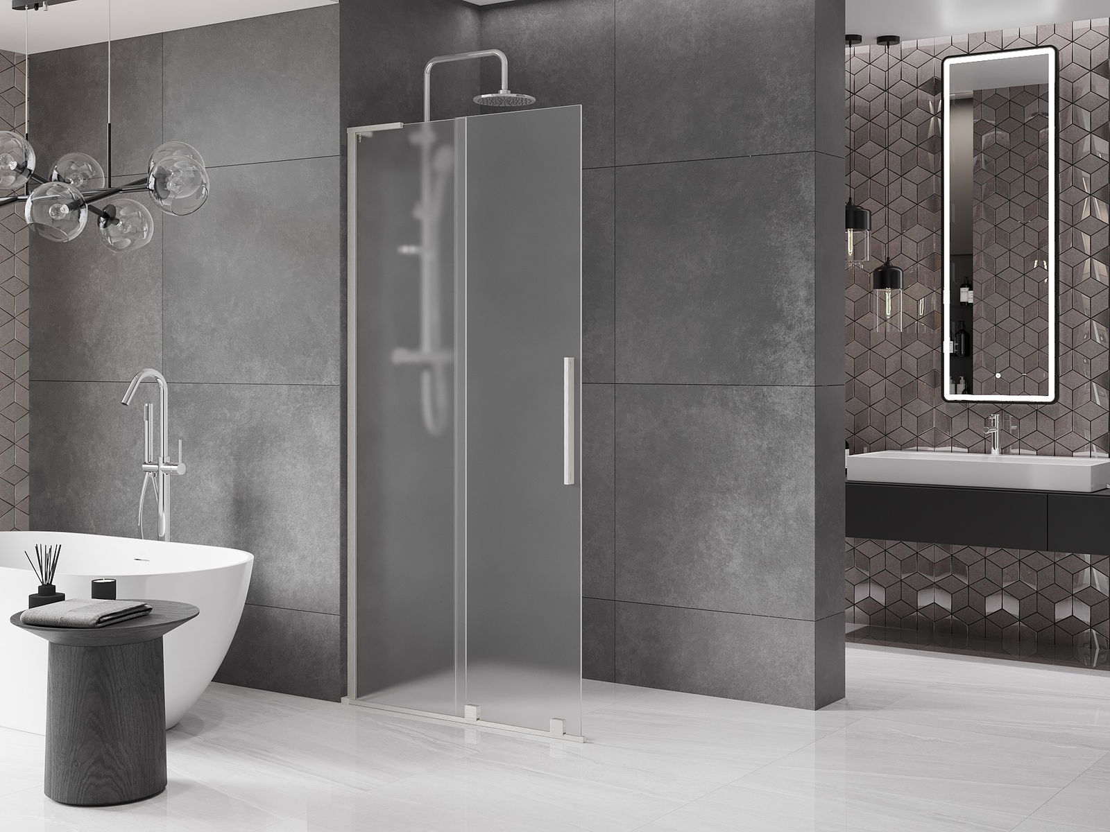 Mexen Velar L Duschwand verschiebbar Walk-in 120 x 200 cm, Frost 8 mm, gebürstetes Nickel - 871-120-003-33-97