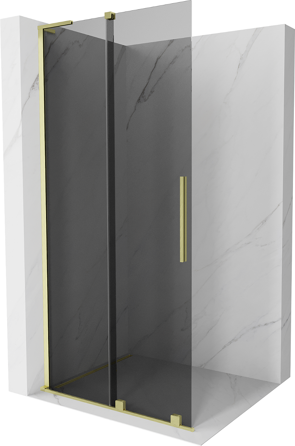 Mexen Velar L Duschwand verschiebbar Walk-in 100 x 200 cm, grafit 8 mm, gebürstet Gold - 871-100-003-43-55