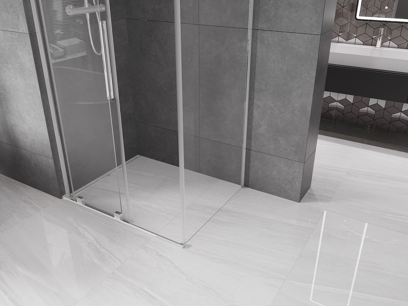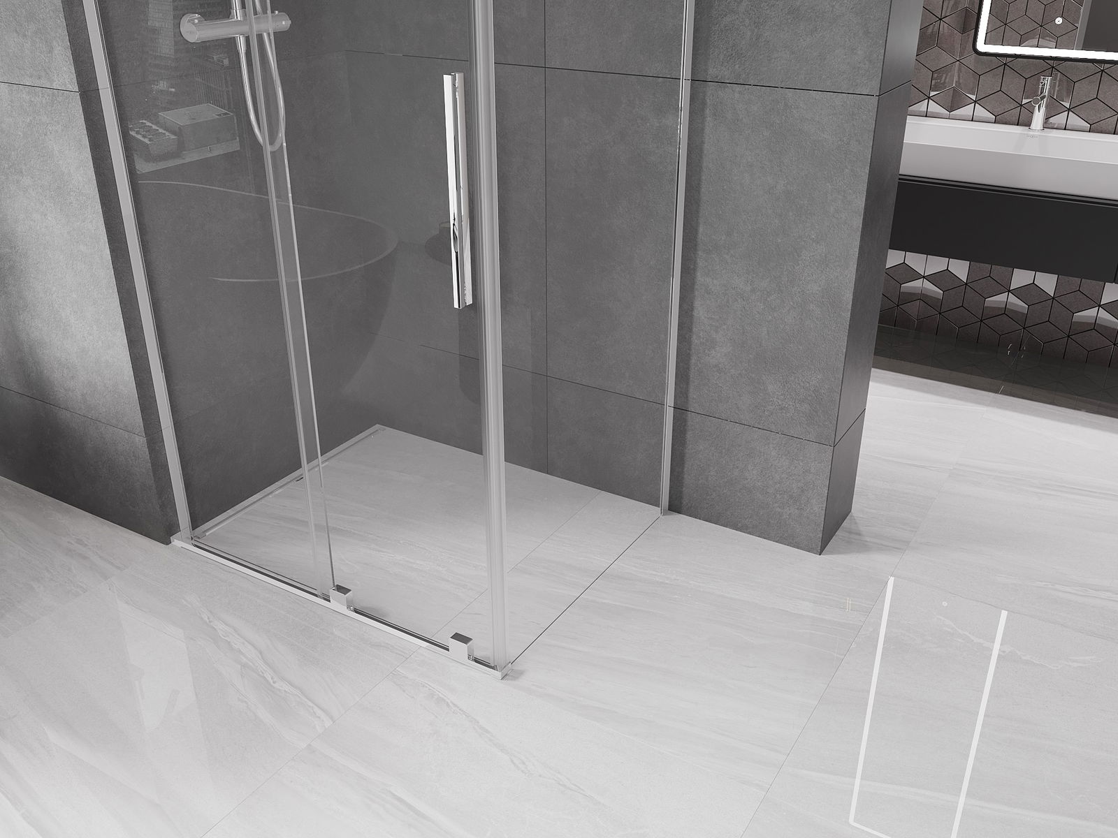 Abhängig von Ihren Bedürfnissen kann das Produkt sowohl auf der Duschschale als auch direkt auf dem Boden montiert werden. Mit der universellen Montagemethode können Sie das Produkt an verschiedene Arten von Badezimmern anpassen und Raum konfigurieren.