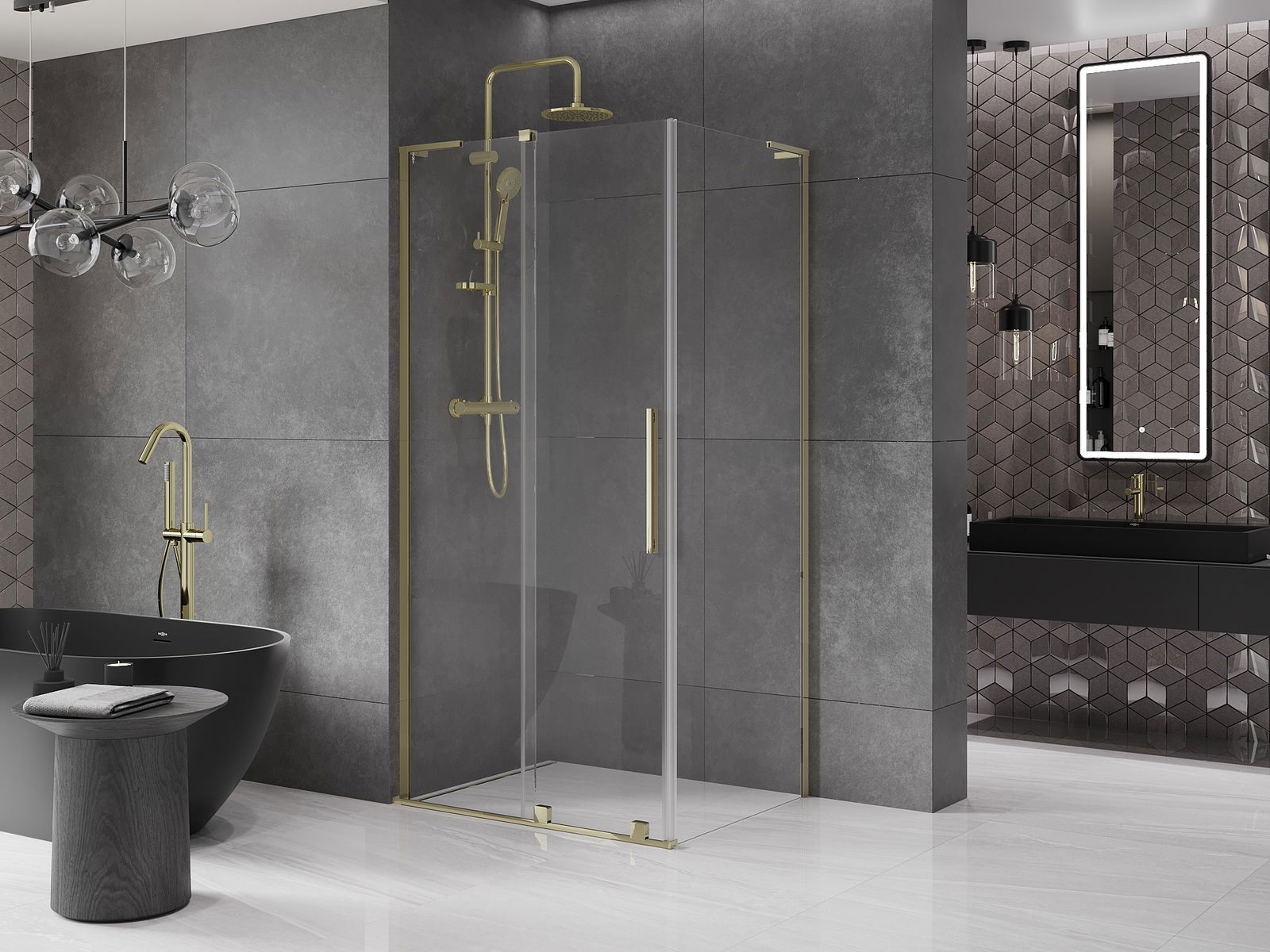 Abhängig von Ihren Bedürfnissen kann das Produkt sowohl auf der Duschschale als auch direkt auf dem Boden montiert werden. Mit der universellen Montagemethode können Sie das Produkt an verschiedene Arten von Badezimmern anpassen und Raum konfigurieren.