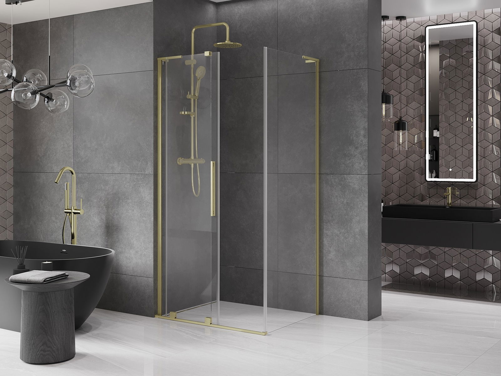 Dank der Verwendung eines universellen Montagesystems können die Duschtüren je nach Ihren Bedürfnissen rechts oder links montiert werden. Dank dessen können Sie problemlos eine Dusche entwerfen, die auf den Raum des Badezimmers zugeschnitten ist.