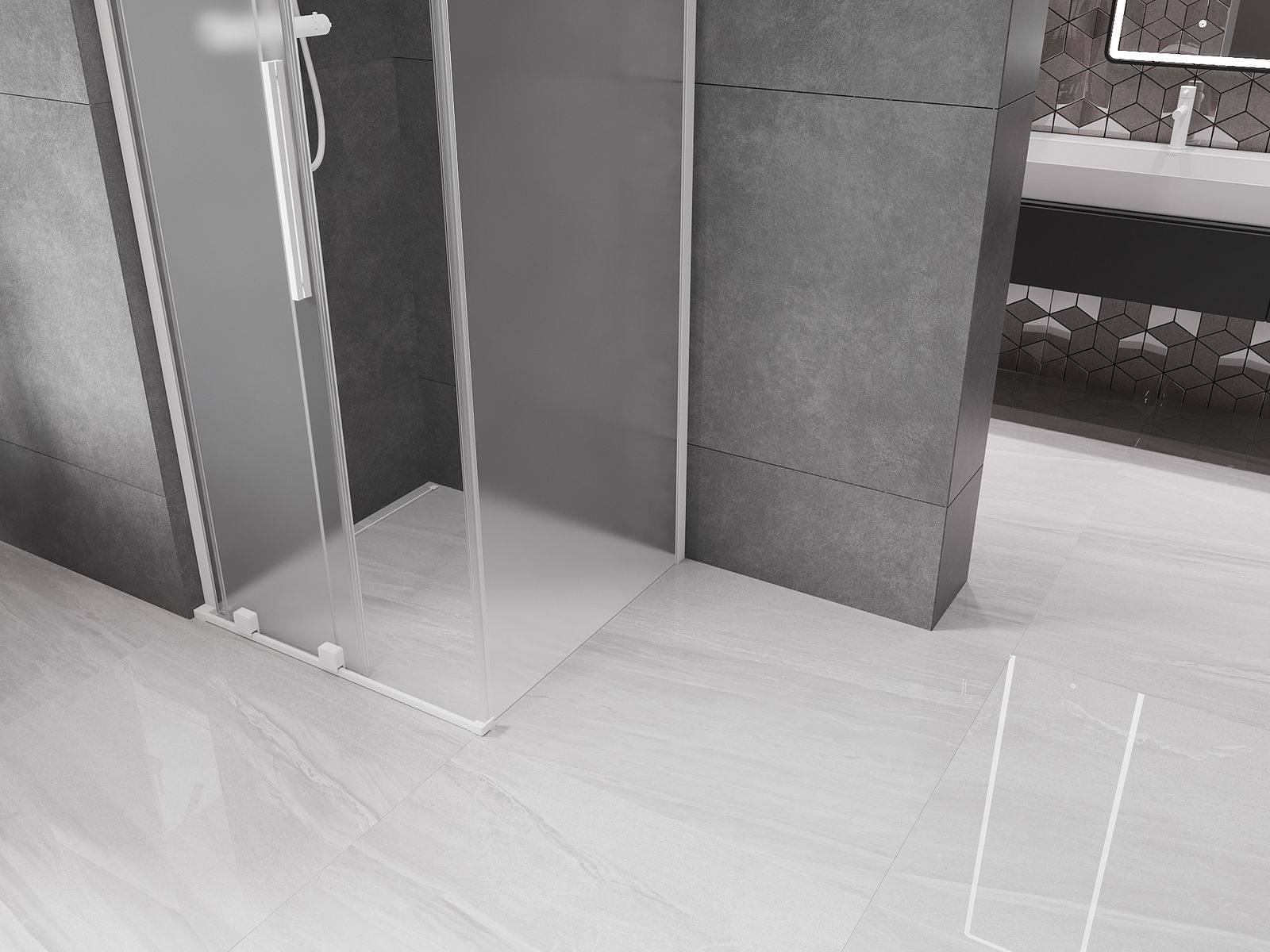Das Produkt kann je nach Bedarf sowohl auf einer Duschwanne als auch direkt auf dem Boden montiert werden. Die universelle Montagemethode ermöglicht die Anpassung des Produkts an verschiedene Arten von Badezimmern und Raumkonfigurationen.