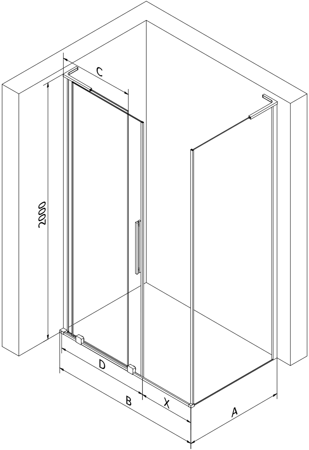 Größe: 120x120 cm (Tür 120 cm, Wand 120 cm)