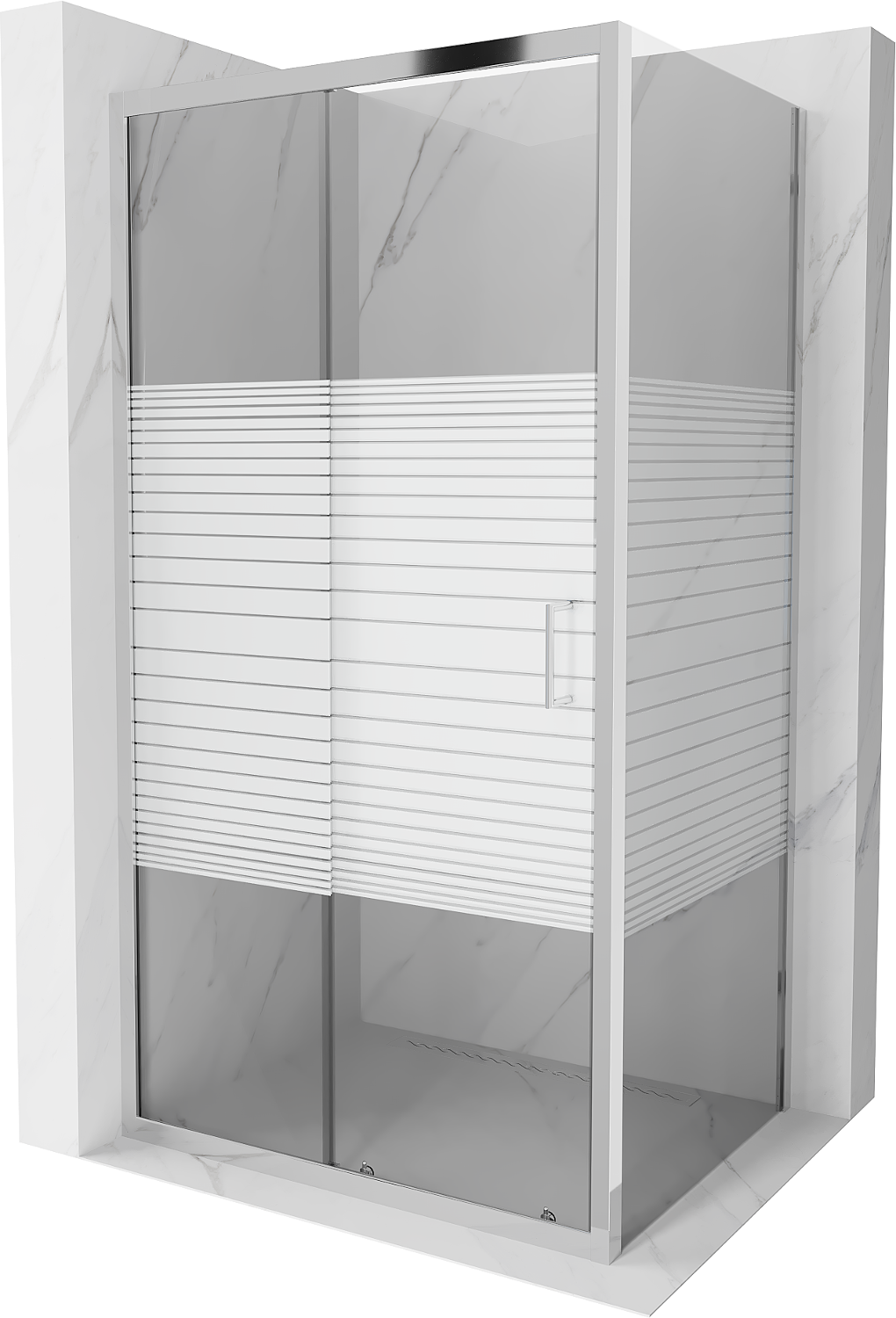 Mexen Apia Schiebeduschkabine 130 x 80 cm, weiße Streifen, Chrom - 840-130-080-01-20