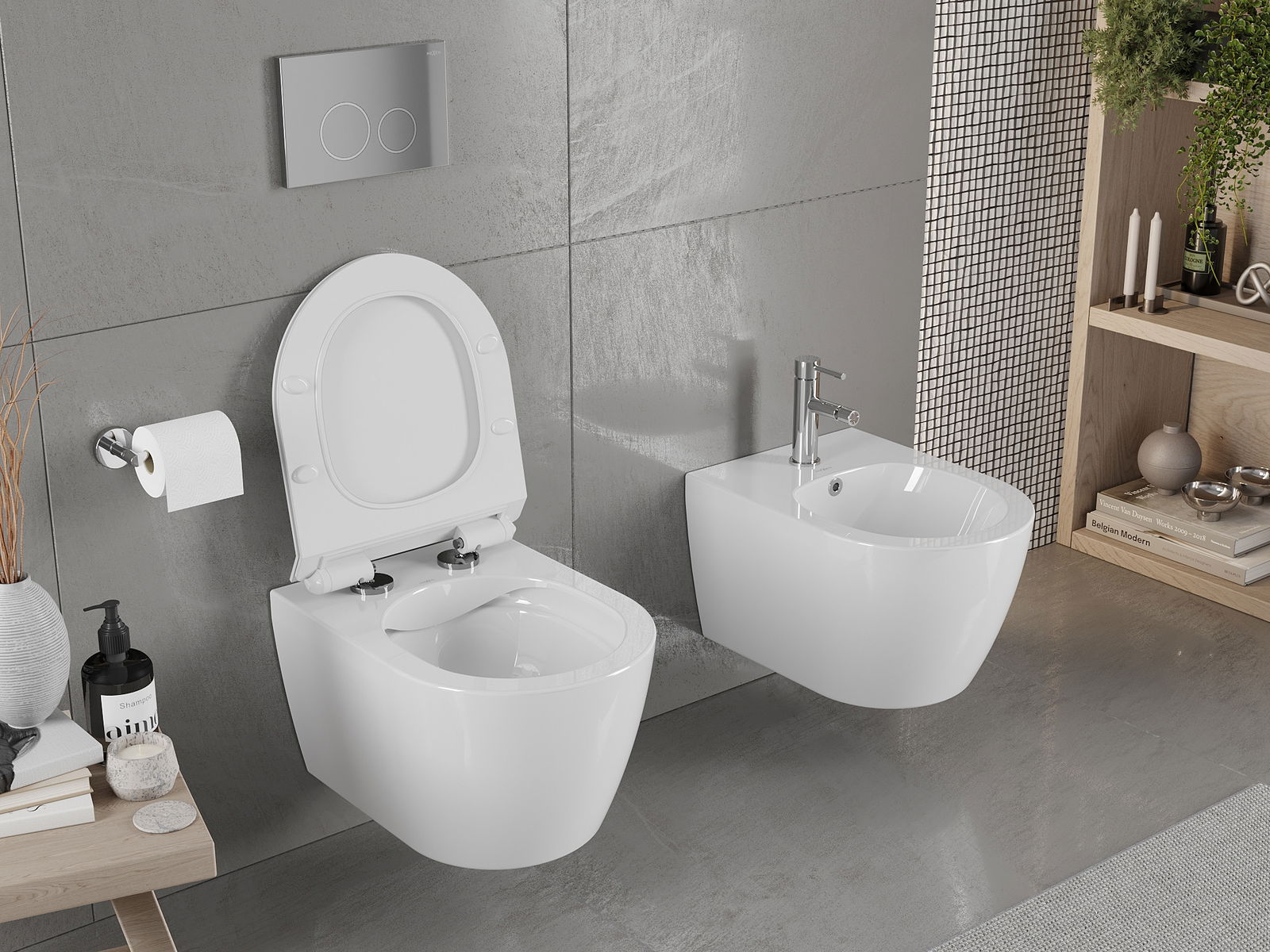 Ein dünnes Brett mit einer extrem ergonomischen Form und einem extrem geringen Aussehen. Das Design passt sich perfekt an das moderne Innenraum des Badezimmers an und vermittelt den Eindruck von Leichtigkeit. Eine ausgezeichnete Wahl für minimalistische Arrangements.