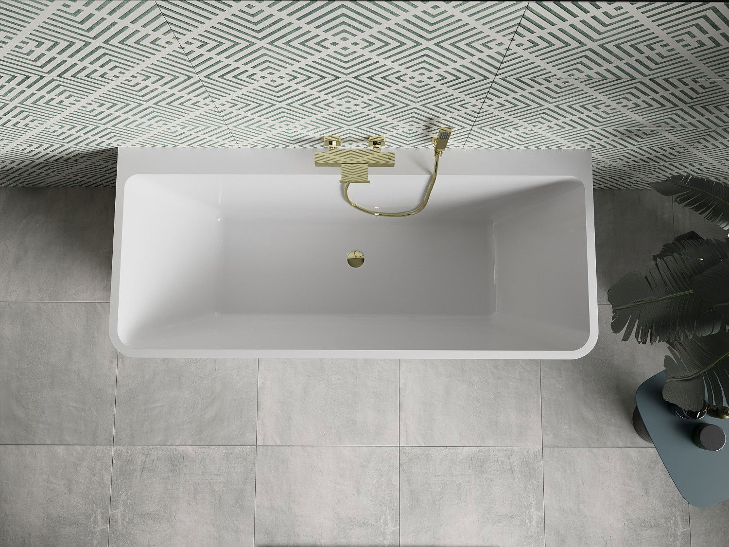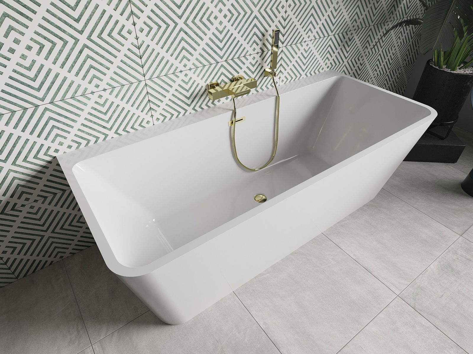 Mexen Volta freistehende an der Wand montierte Badewanne 150 x 75 cm, weiß, Überlauf gold - 51131507500-50