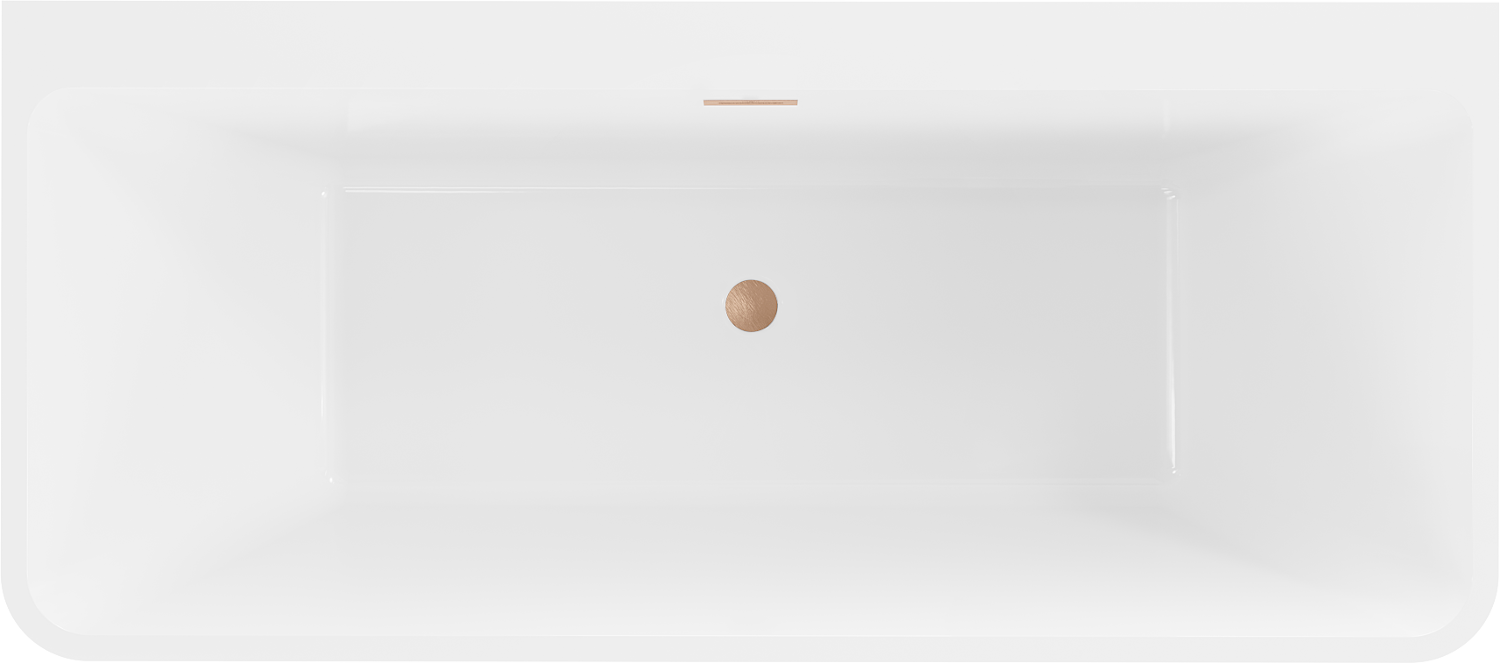 Mexen Volta freistehende, wandnahe Badewanne 150 x 75 cm, weiß, Überlauf gebürstetes Kupfer - 51131507500-65
