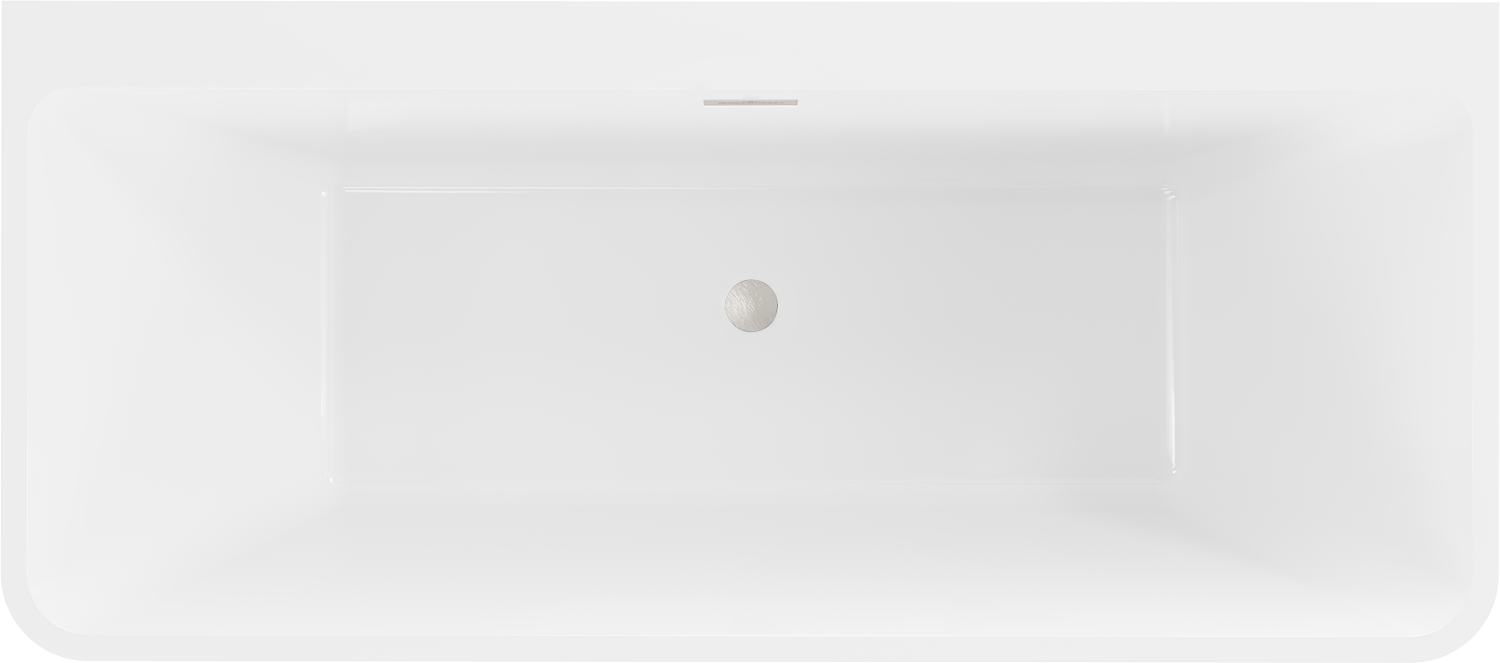 Mexen Volta freistehende an der Wand stehende Badewanne 150 x 75 cm, weiß, Überlauf aus gebürstetem Nickel - 51131507500-97