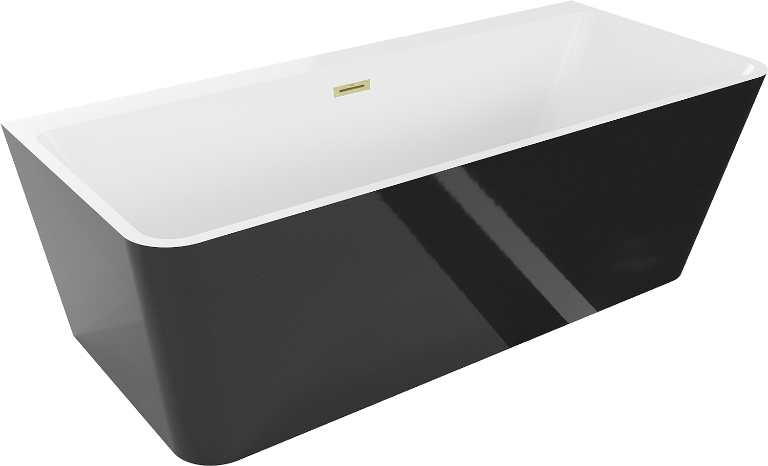 Mexen Volta freistehende Wandbadewanne 150 x 75 cm, weiß/schwarz, mit gebürstetem Goldüberlauf - 51131507575-55