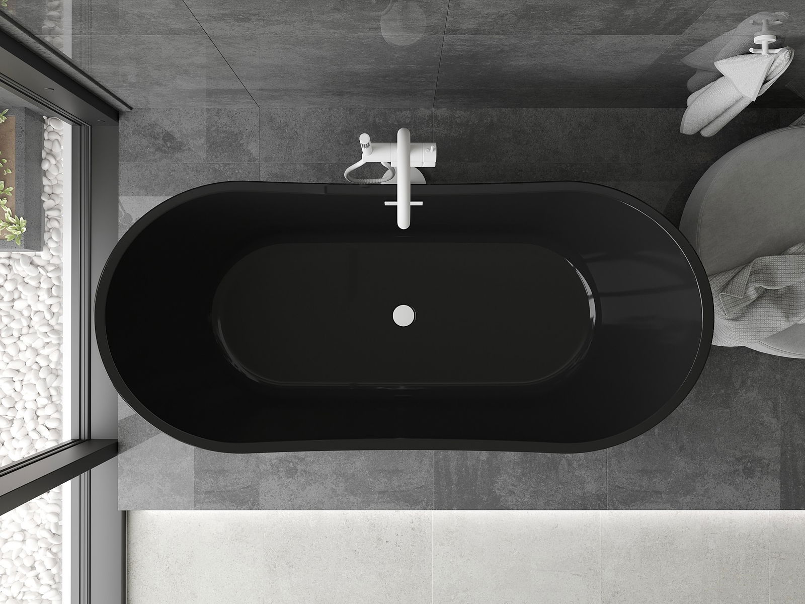 Mexen Montana freistehende Badewanne 170 x 80 cm, schwarz, weiße Überlauf - 52011708070-20