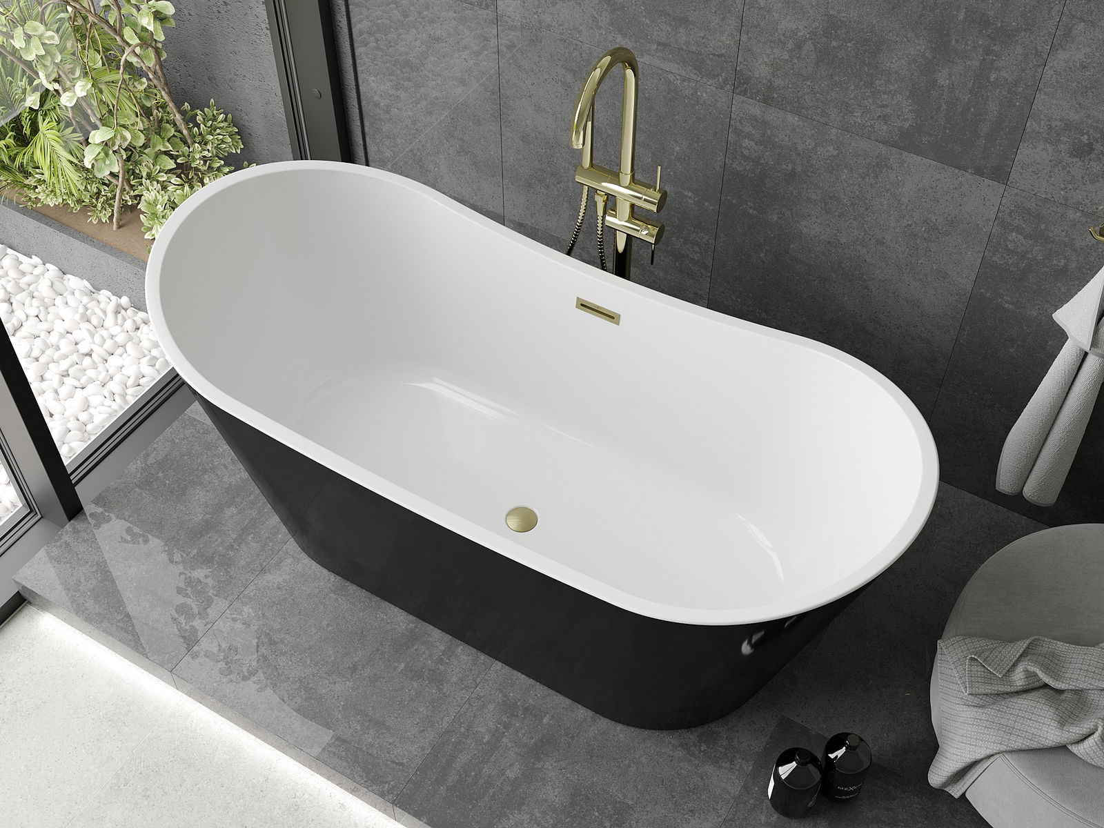 Mexen Montana ist eine elegante freistehende Badewanne mit den Maßen 170 x 80 cm, hergestellt aus robustem Sanitäracryl. Sie zeichnet sich durch eine stilvolle Farbkombination aus Weiß und Schwarz sowie eine Ausführung in gebürstetem Gold aus. Dank einer Tiefe von 44,5 cm und einer Höhe von 72 cm bietet sie Komfort beim Baden. Sie verfügt über eine praktische Überlauföffnung und einen mittig platzierten Abfluss, was die Montage erleichtert. Beständigkeit gegen Mattierung und UV-Strahlung sorgt für langanhaltende Nutzung und ein ästhetisches Erscheinungsbild.
