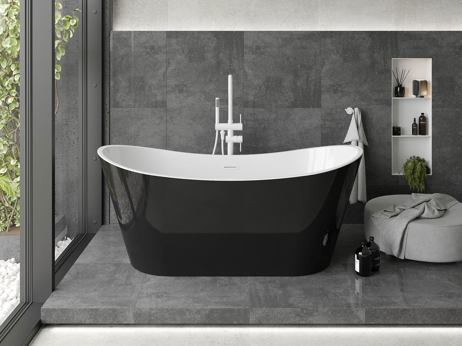 Mexen Montana freistehende Badewanne 180 x 80 cm, weiß/schwarz, weißer Überlauf - 52011808075-20