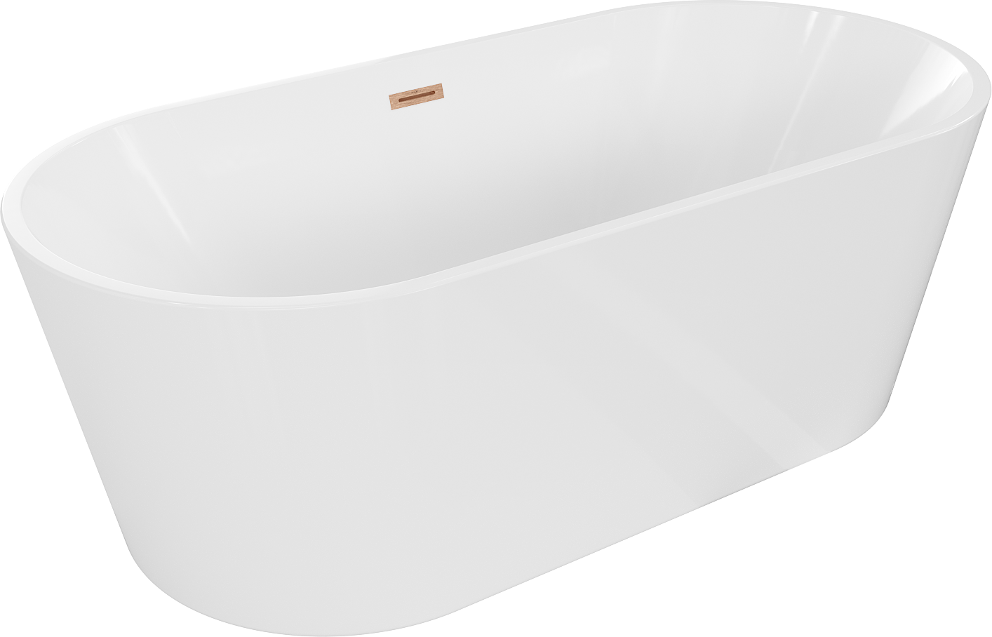 Mexen Luna freistehende Badewanne 150 x 75 cm, weiß, Überlauf gebürstetes Kupfer - 52031507500-65