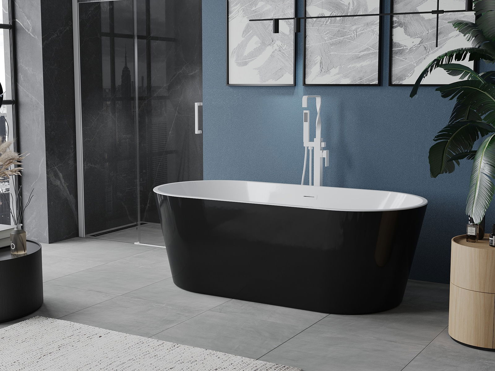 Mexen Luna freistehende Badewanne 170 x 80 cm, weiß/schwarz, weißer Überlauf - 52031708075-20